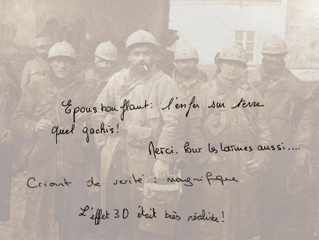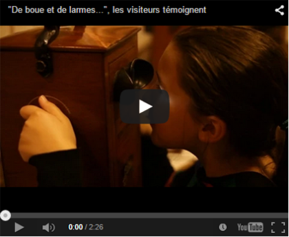 "De boue et de larmes..." présente un ensemble exceptionnel de photographies stéréoscopiques (photographies 3D) prises en premières lignes de part et d'autre du front. La puissance visuelle de ces photographies appuyée par une scénographie immersive offre au visiteur une expérience unique : un voyage dans le temps à la découverte de la réalité humaine de la Grande Guerre. Transporté de l'ambiance feutrée d'un salon d'époque à celle d'une casemate de tranchée, il découvre le conflit à travers les yeux des hommes qui ont combattu...