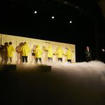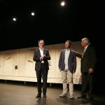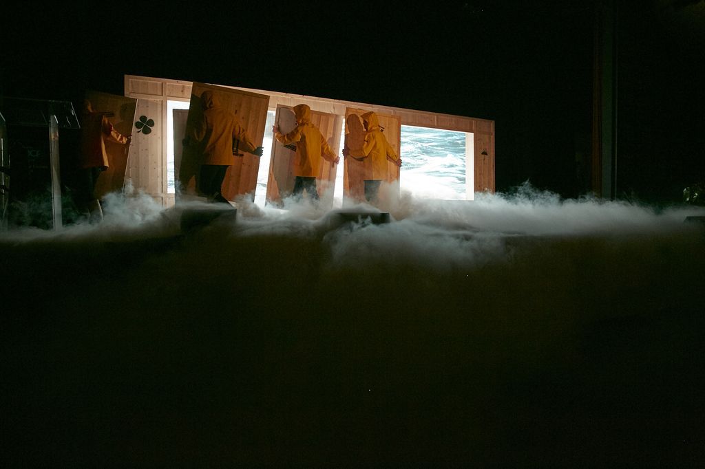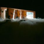Une impressionnante installation est mise en place pour la fin de cérémonie. Samuel Tual, connu pour son engagement dans la voile de compétition, a en effet réservé une surprise aux invités en leur ramenant une gigantesque caisse en bois contenant une portion d’Atlantique nord ! A l’instant où les marins ouvrent la boite, des images de tempête sortent de celle-ci avec son souffle puissant, son effervescence sonore et ses embruns marins…