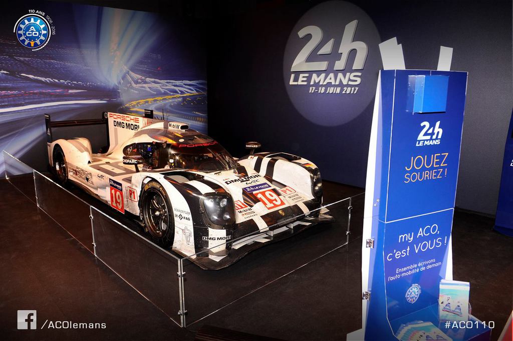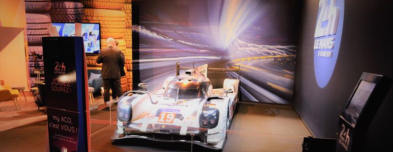 La Porsche 919 Hybrid de Dumas-Jani-Lieb, vainqueur des 24 Heures du Mans 2016, est mise en scène sur le stand dans un photocall qui permet au public de se saisir du fameux drapeau à damier et de simuler l’arrivée du vainqueur dans la ligne droite des stands.