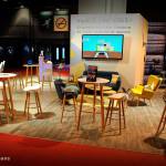 Instant 3D conçoit un stand très ouvert, déclinant les codes couleur et les éléments iconiques du circuit Bugatti.