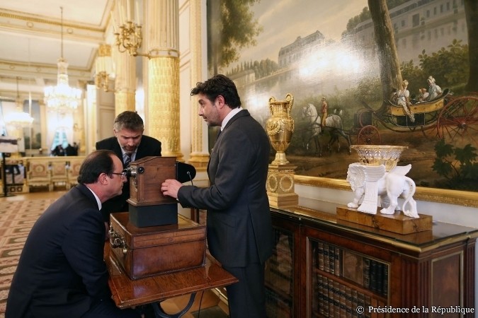 « De boue et de larmes… » dans les salons de l’Elysée afin de permettre aux 400 invités de découvrir les exceptionnelles photographies originales en 3D réalisées sur le front.