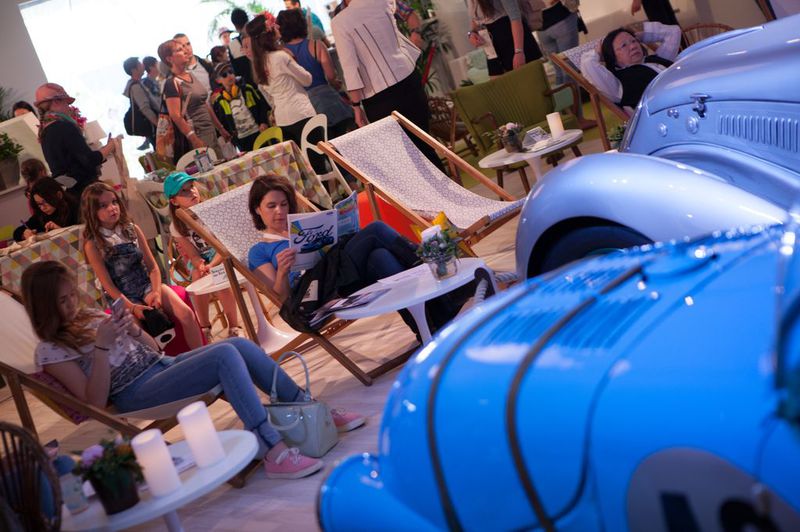 Instant 3D conçoit pour l’occasion un pavillon de 500 m2, très coloré, dans lequel se côtoient des voitures pilotée par des femmes, un simulateur de conduite sur mesure, une exposition des femmes pilotes au Mans, un bar lounge, un photocall « décapotable », des transats pour suivre la course sur grand écran, des postes de massage, maquillage, coiffure, manucure pour se faire bichonner ! Un jardin abondamment fleuri y est annexé. Le succès est au rendez-vous. Depuis, le public masculin réclame lui aussi son Pavillon !